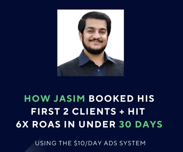 Jasim is a Meta Ads strategist for eCommerce brands in Australia. Even though he knew how to run ads for clients, he struggled to get leads for his own service — until he implemented the $10/Day Ads System.