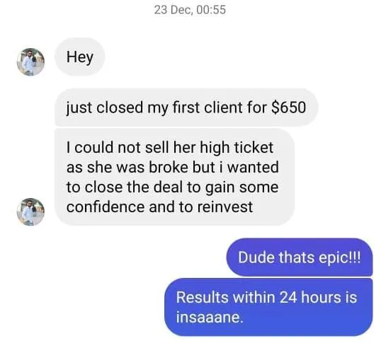 "One low-ticket conversion already - and another high-ticket client in progress."