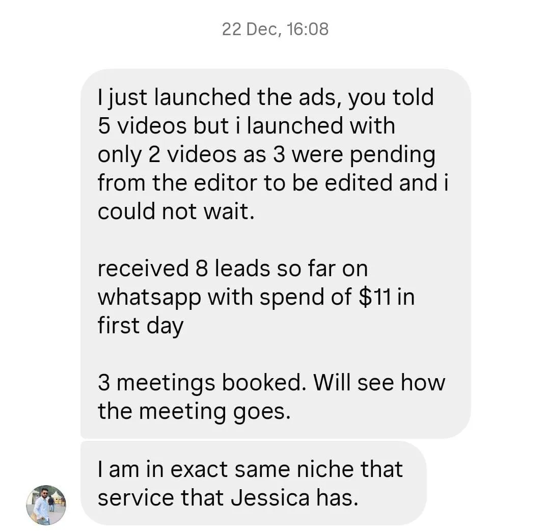 I launched my ads around 4-5 days ago and I already have 50 leads. I am paying between $2- $3 per lead - and I was able to book $850 in sales already within the first week.